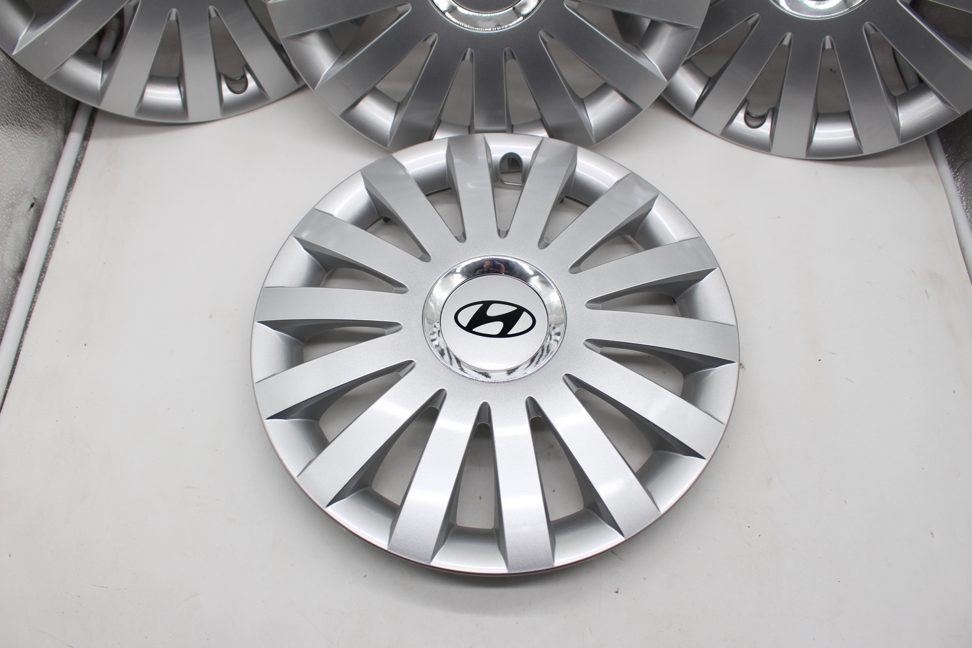 Satz original Hyundai Radkappen (Radzierblenden) für 13 Zoll Stahlfelgen.