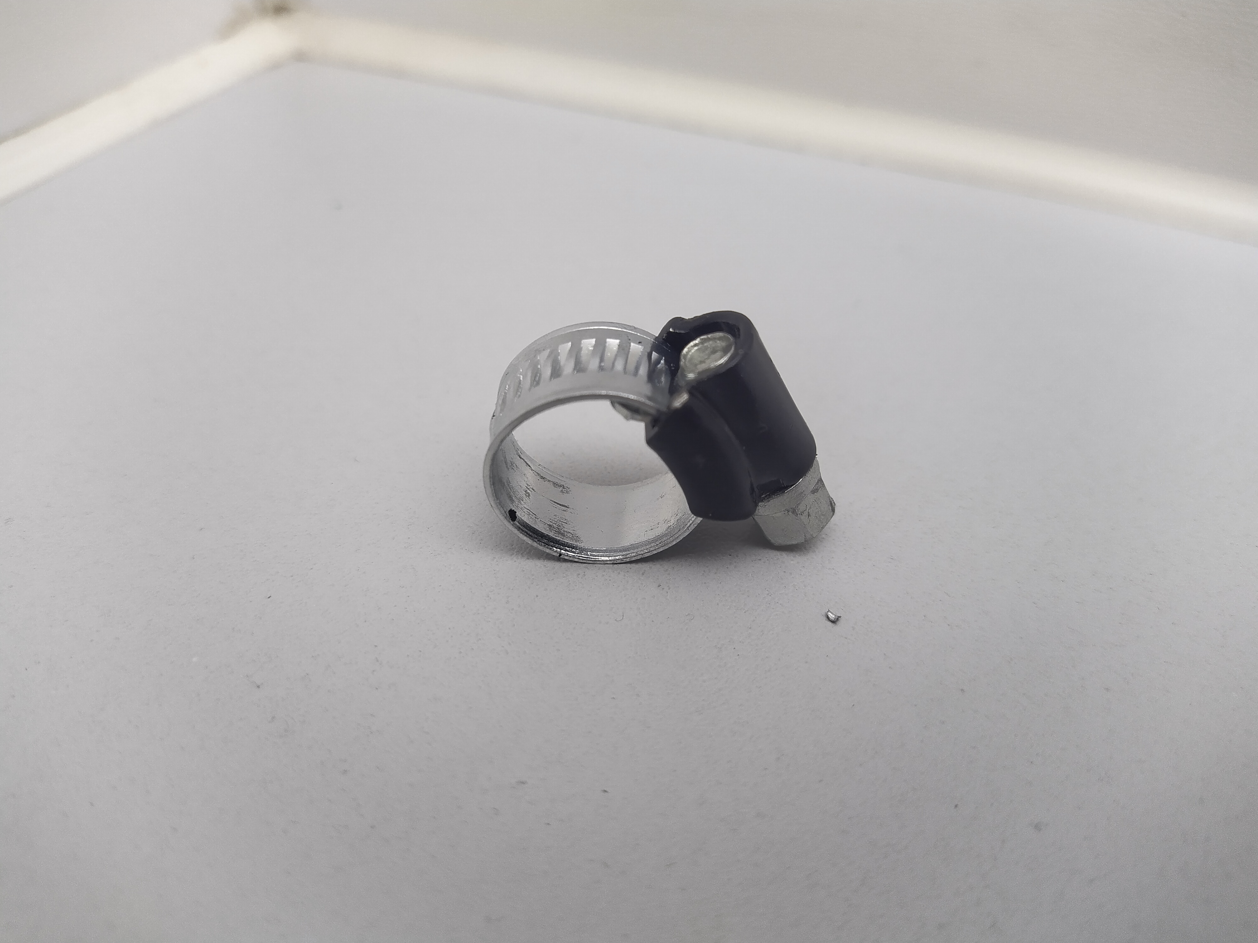 Schlauchschelle mit schwarzem Kopf aus Metall, für Hochdruckanwendungen. Lässt sich mit einer Nuss sehr stark anziehen und schützt den Schlauch vor Beschädigung. Auf keinen Fall mit einer dünnen Standard Schlauchschelle vergleichbar.