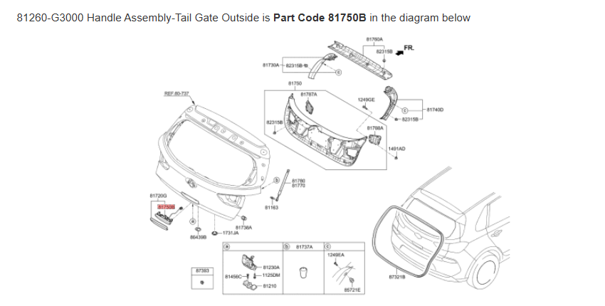 Produktinformationen "Hyundai Heckklappengriff außen 81260-G3000 Tailgate Handle Elantra GT i30 neu"