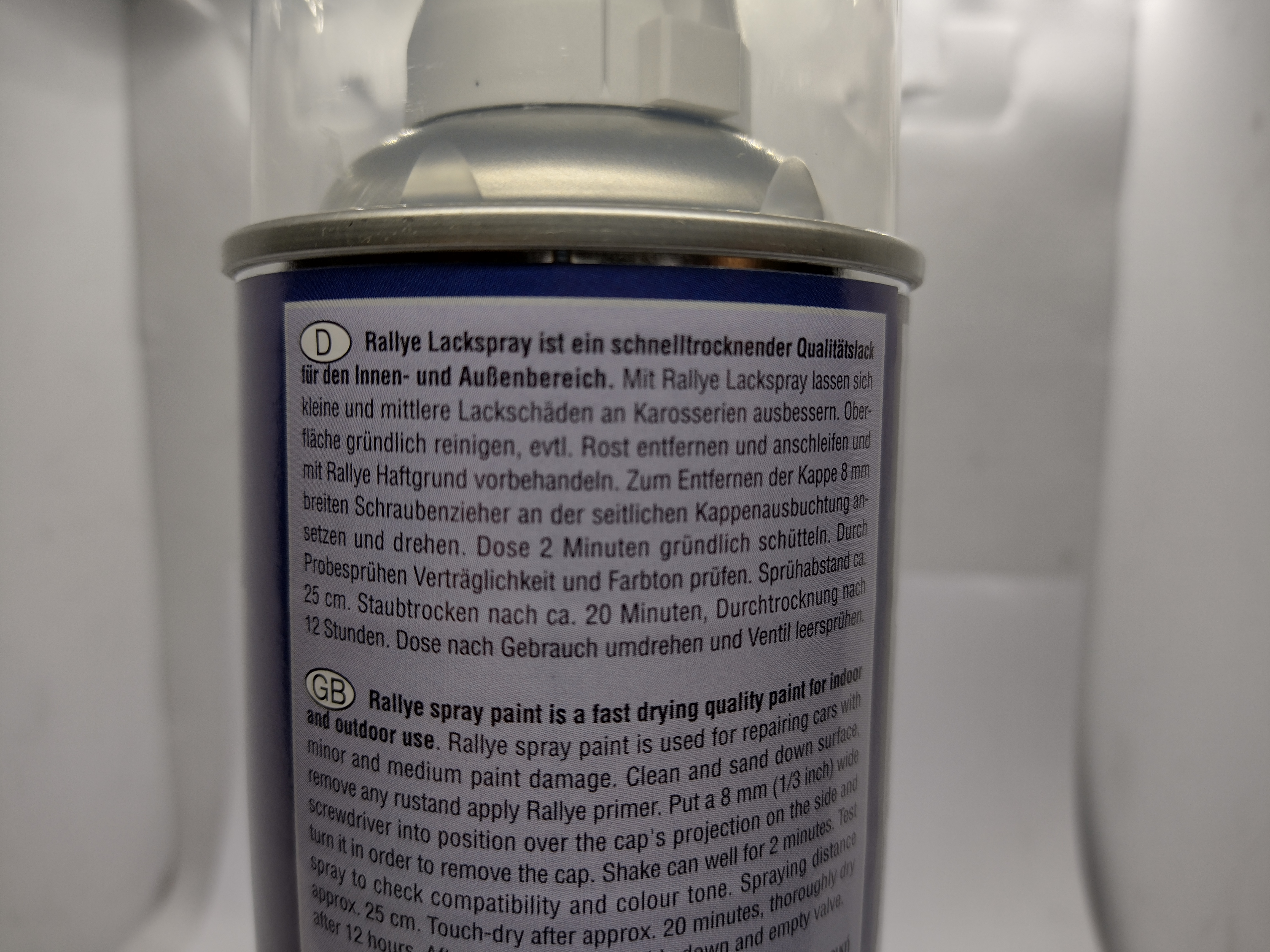 - Nach Beendigung des Lackiervorgangs die Dose auf den Kopf drehen und das Ventil (Sprühkopf) leersprühen, so kann die Dosen auch weiter verwendet werden.