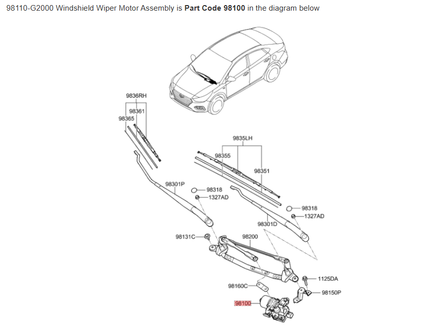 Produktinformationen "Original Hyundai Wischermotor vorne 98110-G2000 Accent Ioniq Scheibenwischer Motor"