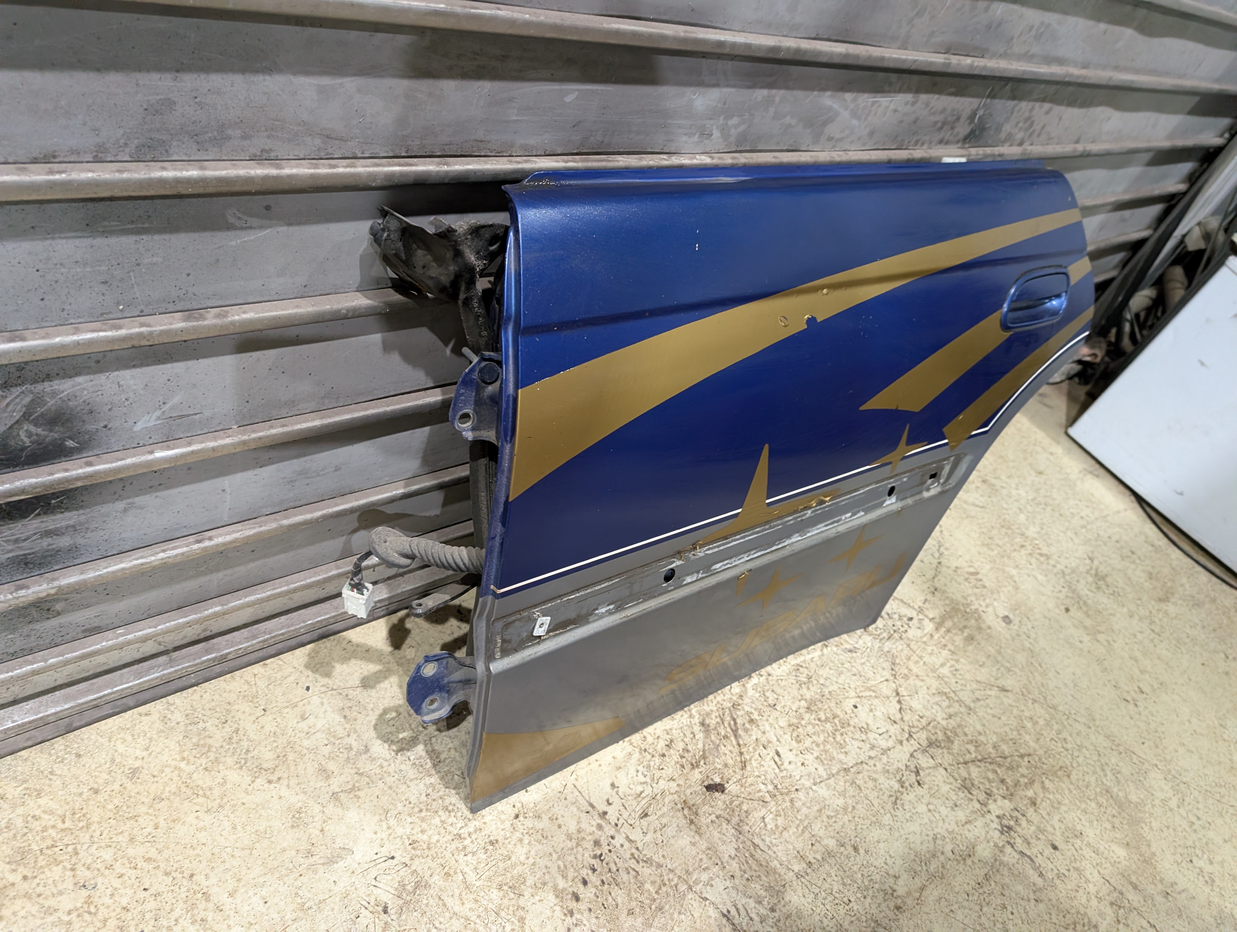 Die Tür ist in der Farbe blau/grau lackiert (Farbton kann je nach Baujahr leicht abweichen). Es handelt sich um ein originales Subaru-Karosserieteil und eignet sich ideal als Ersatz bei Rost-, Unfall- oder Lackschäden.