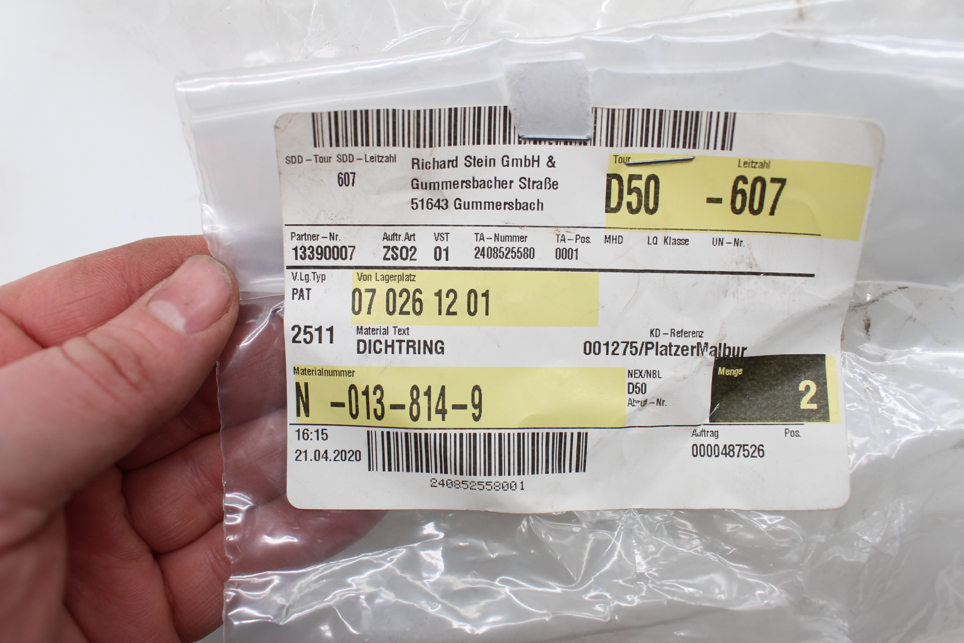 • Zusätzliche Teilenummer (Dichtring): N0138149