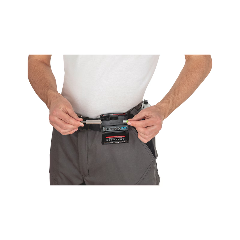 Die Bits sitzen sicher im Bitriegel und fallen nicht heraus, lassen sich jedoch leicht entnehmen. Das Würth Farbleitsystem sorgt für eine schnelle Identifikation der richtigen Bitgröße. Durch den praktischen Clip kann die Bitbox bequem am Gürtel befestigt werden. Die kompakte Bauform im Würth Rastermaß macht sie vollständig kompatibel mit dem ORSY System.