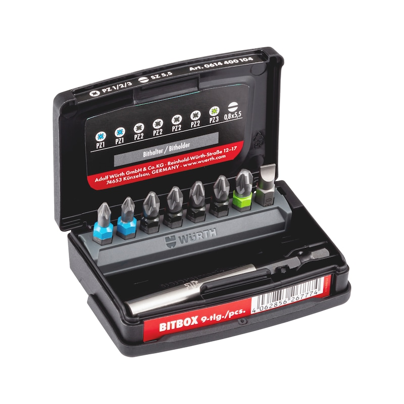 Produktinformationen "Würth Bitbox Größe 1 9 teilig PZ Schlitz 1/4 Zoll mit Bithalter ORSY System"