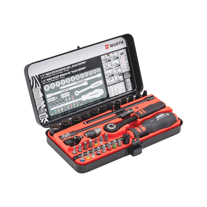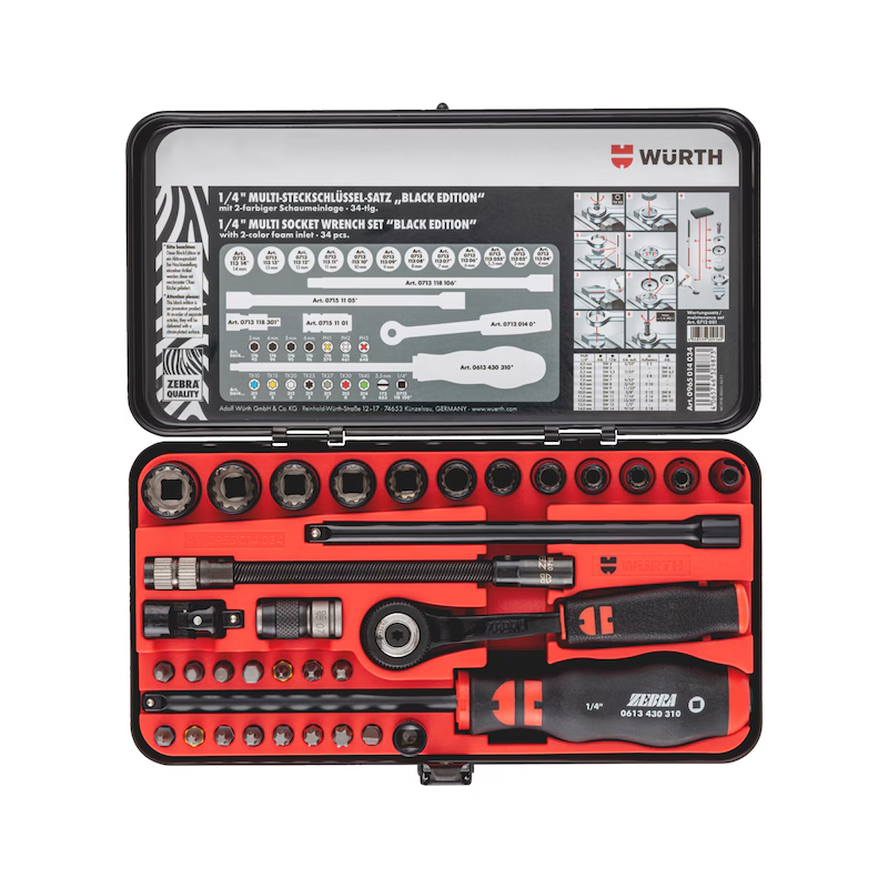 Produktinformationen "Würth Multi Steckschlüsselsatz 1/4 Zoll Black Edition 34 teilig Metallkassette"