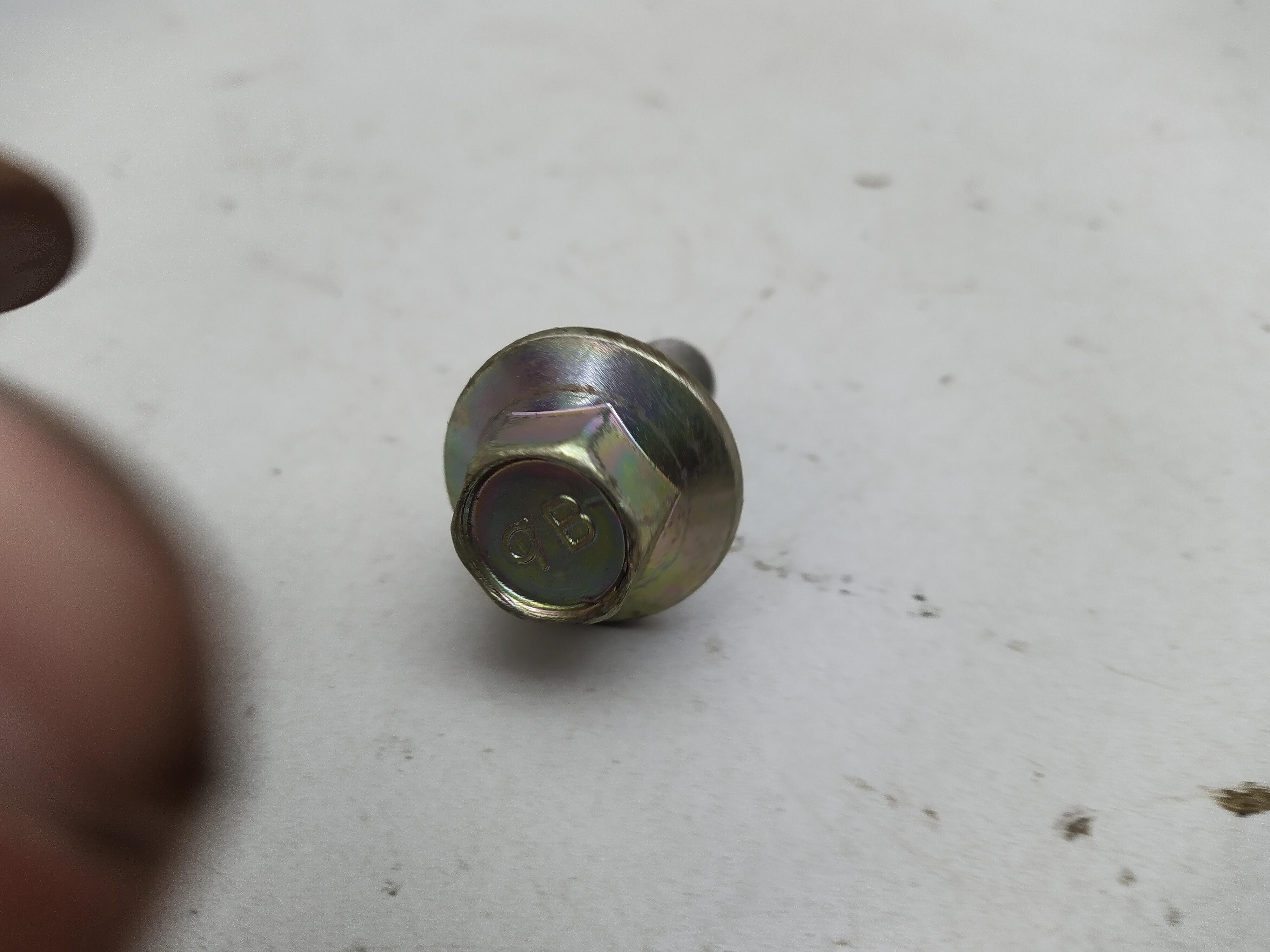 Gebrauchte kurze Schraube für die Nockenwellenräder.